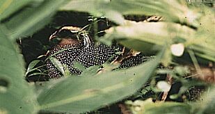 A large brown pheasant of low hill forest, as well as the transition zone from lowland to hill forest. Shy and extremely difficult to see, and highly restricted in range. Most sightings are at dancing grounds, where males have cleaned the leaf litter from a large patch of the forest floor. Male has a gigantic tail longer than his body and a very long crest that is dark on the top and white below. Female is much smaller and shorter-tailed. Males give long, loud whooping vocalizations during the breeding season. Similar in shape and size to Great Argus, but separated by many details, including the less extensive and duller bluish facial skin, the more complicated facial pattern and crest, and the duller pinkish-colored rather than reddish legs.