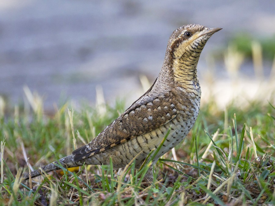 Bizarre and unmistakable small gray woodpecker. Note broad black stripe down middle of crown and back. Cryptic plumage and sluggish habits make it easily overlooked. Favors open country with scattered trees, orchards, farmland; nests in tree cavities. Feeds mostly on the ground, probing with its long tongue for ants; hops with deliberate, rather jerky motions, often twitching its tail and turning its head. Song is a rising series of high, piercing notes, similar to that of a falcon.