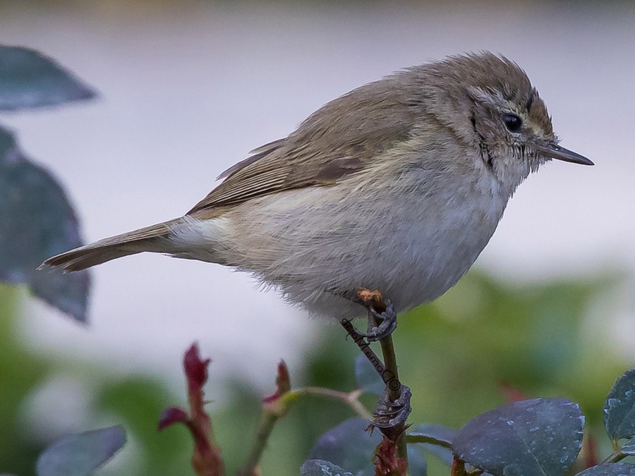 A small, unmarked warbler with dark bill and legs. Sandy gray above and pale gray below. Can be confused with other warblers, but note the lack of olive or yellow in the plumage and the weaker pale eyebrow. Inhabits dry, arid regions where it forages among thorny scrub and in low bushes. The song is a short burst of sharp, sweet notes and the calls include dry, harsh sounds.