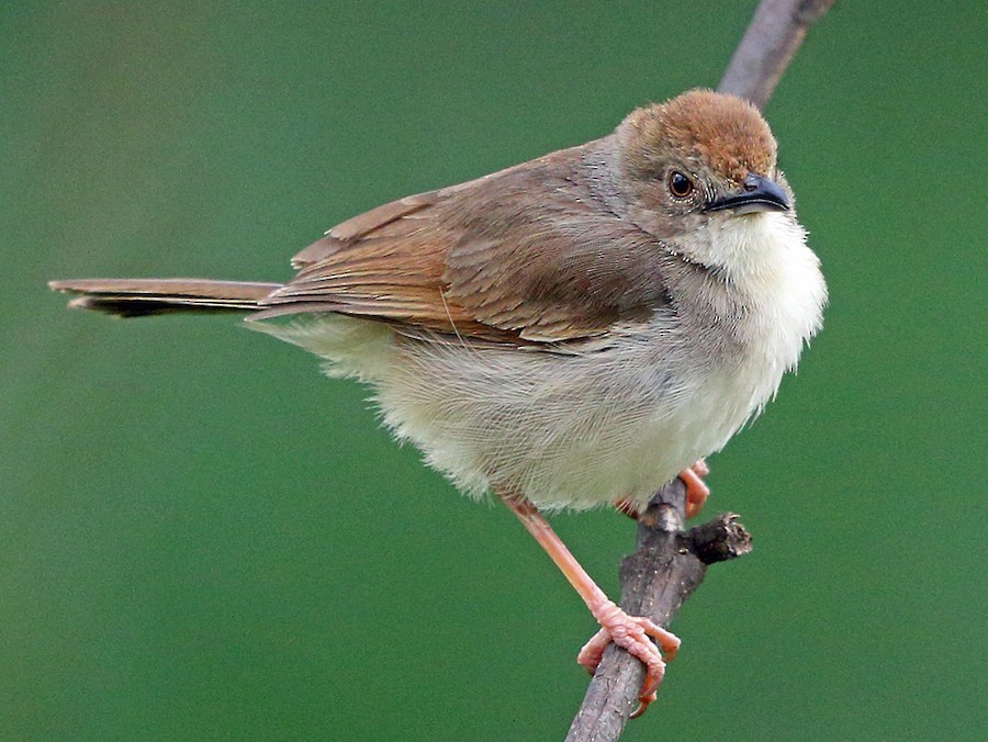 Fairly large, plain cisticola. Note the rufous cap, pale underparts, and two bands across the tip of the tail, one pale and one black. Found in a variety of savanna habitats, including miombo. The distinctive song is a high, rising trill, given from a prominent perch. The call is an agitated, repeated “chit.” As with other cisticolas, habitat and vocalizations are important to identification. Fairly similar to Whistling Cisticola, but has a rufous cap.